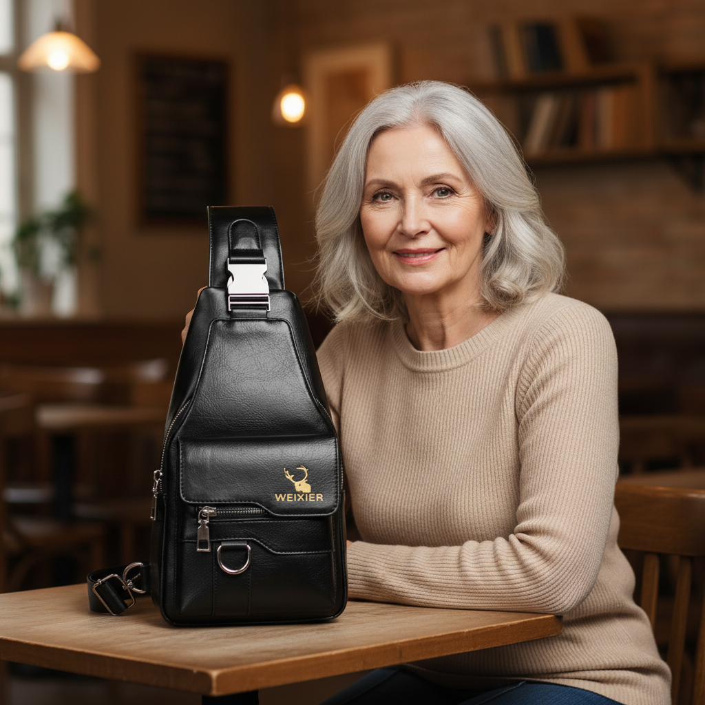 I designed this small sling bag to look modern while still preserving a bit of that old charm that I love so much. Its slim, upright shape makes it light and comfortable to carry, especially when you're on the go. Multiple compartments keep everything neatly in place, and the water-repellent leather reliably protects your belongings.